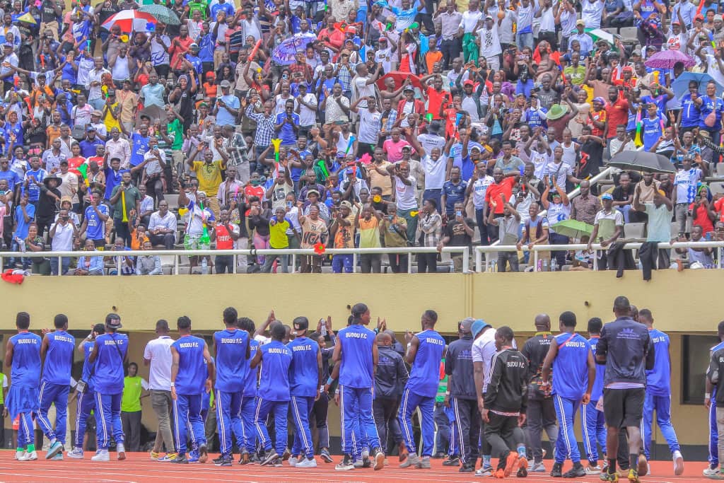 Buddu ssaza players waving to the fans in Mandela National Stadium