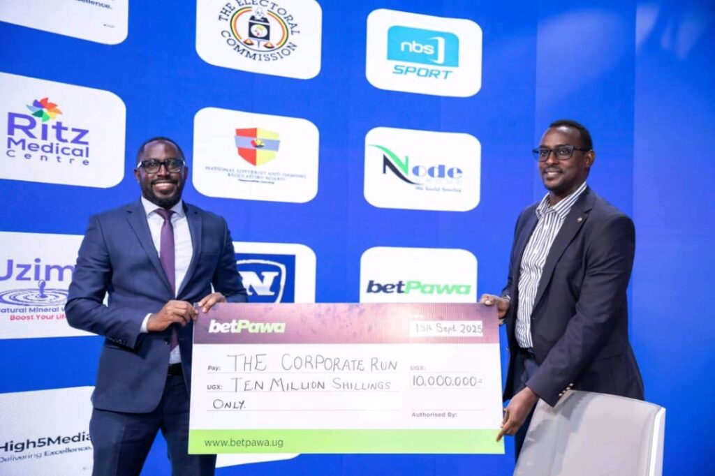 Ian rumanyika receives a 10m cheque from betpawas Alla Tumushabe