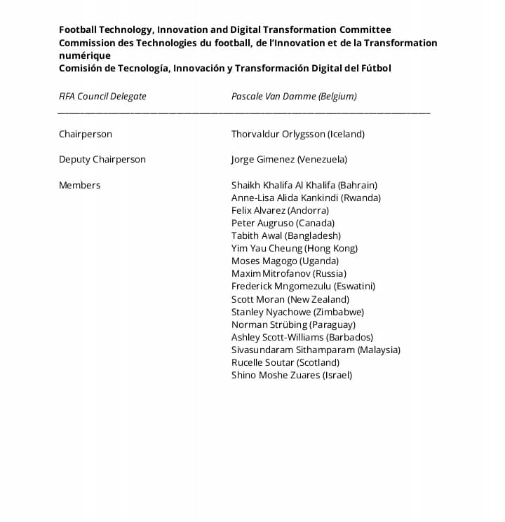 The committee, chaired by Thorvaldur Orlygsson of Iceland, focuses on advancing football through technological innovation and digital solutions to improve the global game’s efficiency, integrity, and fan engagement.