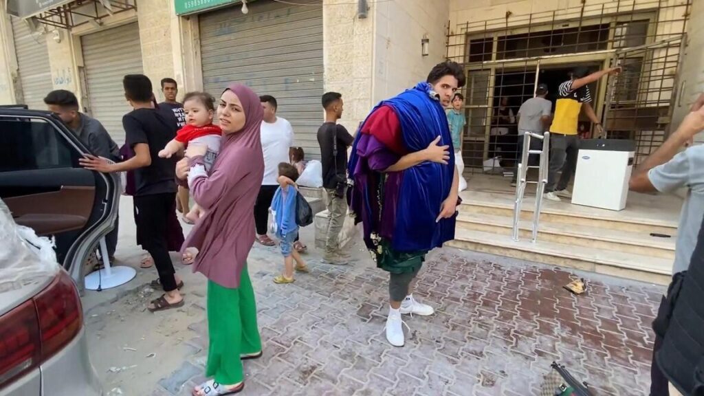 Residents of the Al-Rouya building in Gaza City were seen evacuating on Saturday after the Israeli military issued a warning